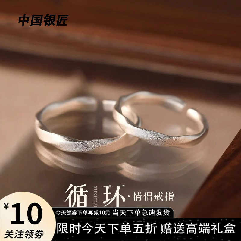 彫刻入りの925スターリングシルバーの指輪開口、シンプルなカップルリングのペア、日本と韓国のインターネットセレブ男女学生のシンプルな指輪個性
