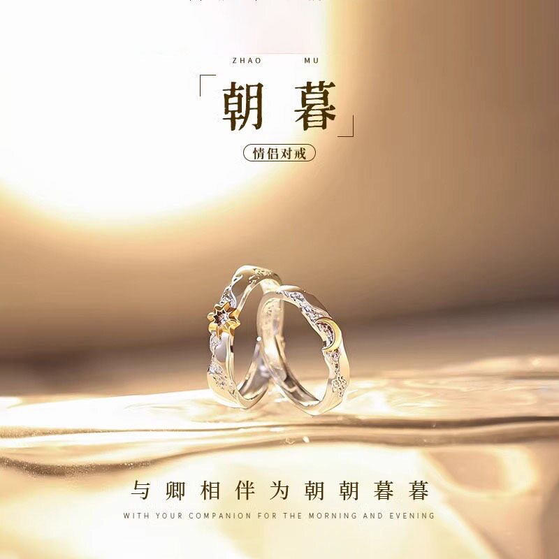 朝と夕方の純銀999カップルリング、ガールフレンドやガールフレンドのためのリビング調整可能な記念日ギフトのペア
