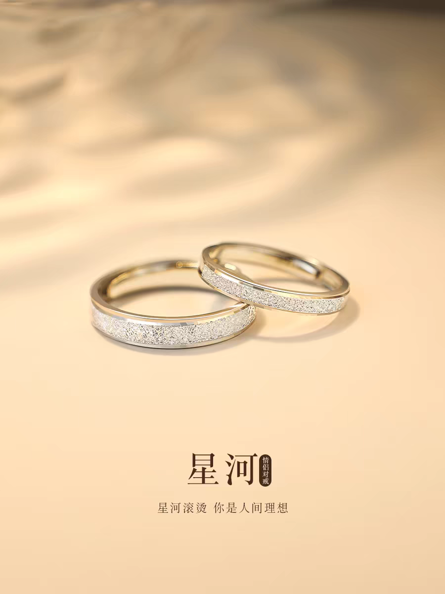 Galaxy 999 純銀カップルリング シンプルなニッチデザインで、指輪を調整可能で、彼女に記念日の刻印を送る