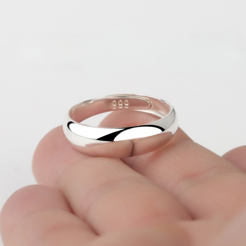 999 スターリングシルバー 光沢リング開口部 調節可能なカップルリング フルシルバー 女性用メンズトレンディなサークル シンプルな彫刻