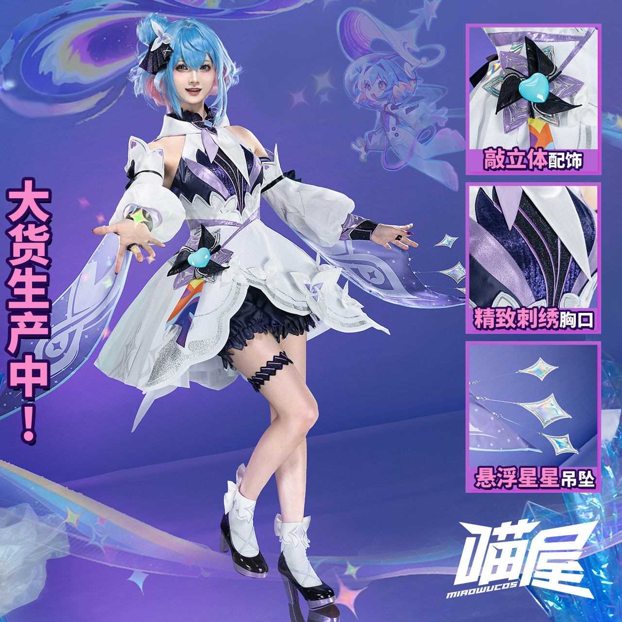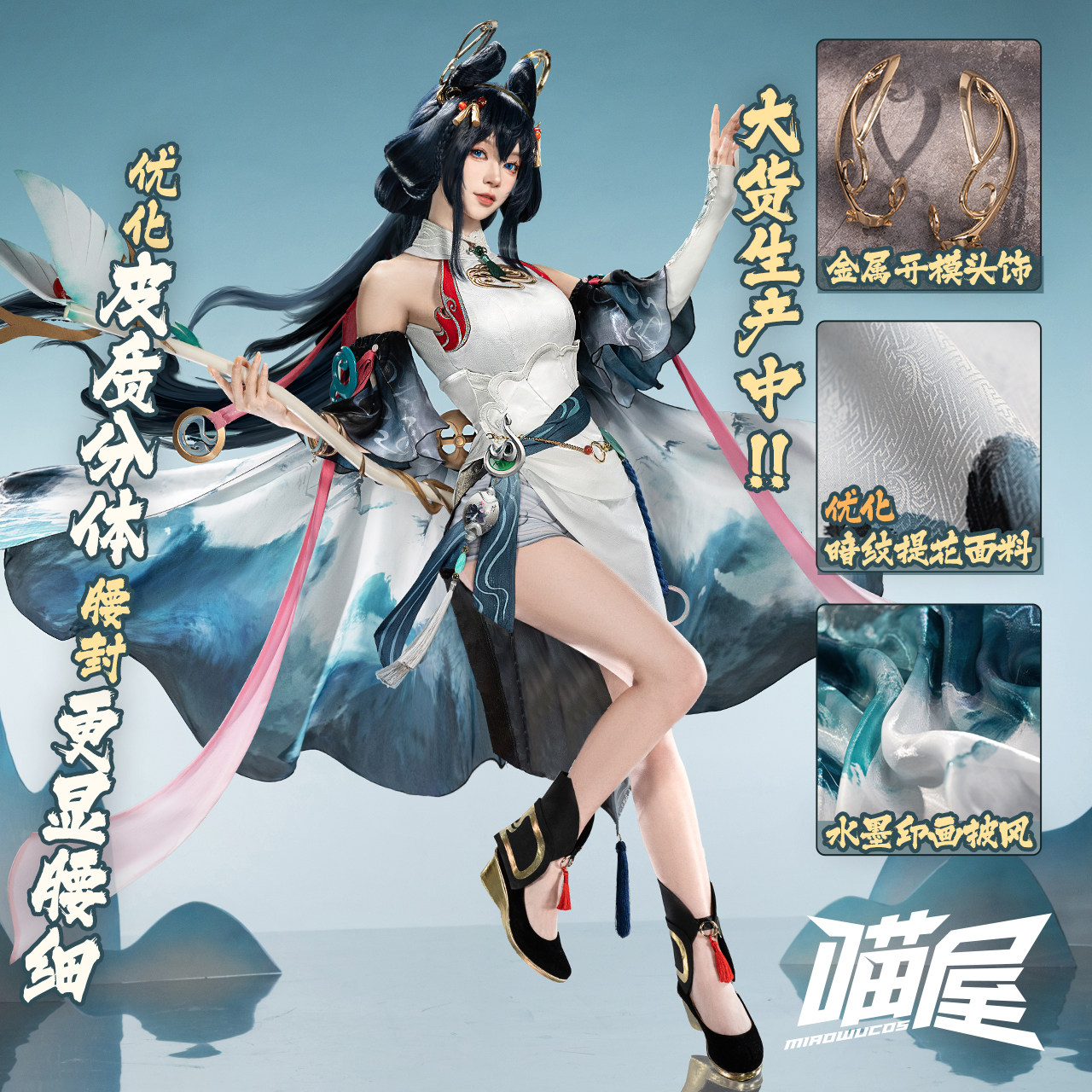 原神 (Genshin Impact)、崩壊:スターレイル、アークナイツ (明日方舟)、ゼンレスゾーンゼロ (Zenless Zone Zero)といったゲーム作品のコスプレ衣装やウィッグ、武器、小道具などを中心に取り扱うタオバオの人気ショップです。微博のフォロワー数は200万を超え、評価4.9点という高い満足度を誇り、品質やサービスに定評があります。同じく人気の高い「三分妄想」がアニメ・ゲーム・オリジナルなど幅広いジャンルを扱う一方、喵屋小铺は特にゲーム作品に特化し、生地や刺繍の繊細さ、立体裁断によるフィット感など、専門的な技術を駆使した高度な再現度で注目を集めています。さらに、サイズオーダーやパーツ単品販売にも応じる柔軟さを持ち、ユーザー一人ひとりのニーズに合わせた提案が可能です。これらの特徴により、コスプレ愛好家から高い支持を受け、国内外でますます人気を高めている注目のショップといえます。-円
