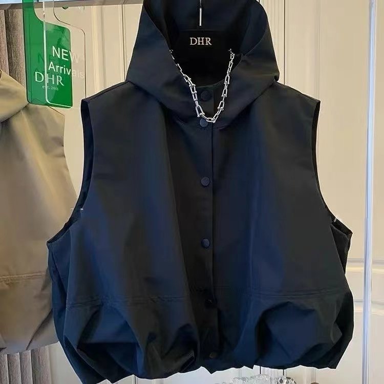 ヨーロッパ製品 フード付き薄手ジャケットベスト 女性用春と秋 新しくゆったりと多用途なカジュアルホースクリップショルダージャケット トレンディ