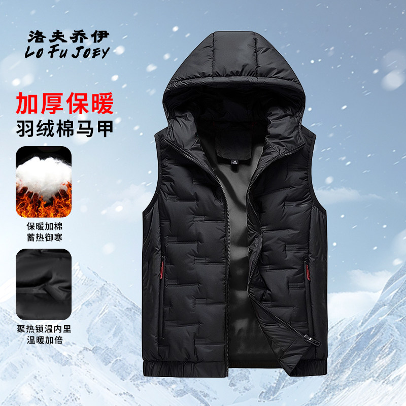 ダウンコットンベスト メンズ 2026年秋冬 ウォームベスト メンズホースクリップ ショルダーフード付きジャケット