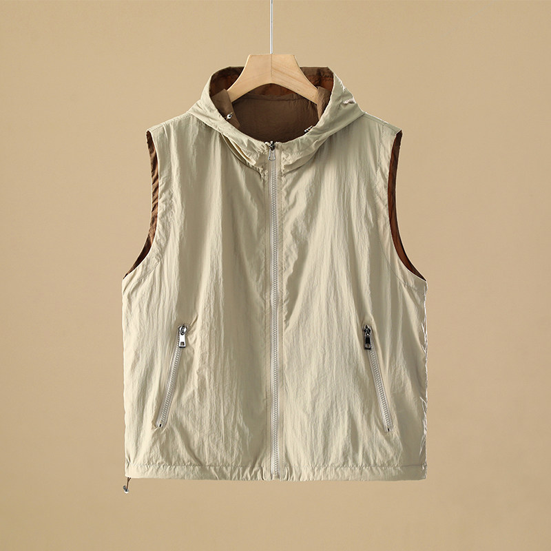 リバーシブルフード付きノースリーブベスト、2026年春夏アウトドア通気性女性用日焼け止め服、多用途トップジャケット
