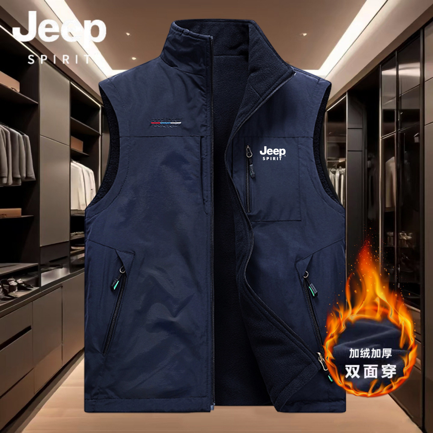 JEEPリバーシブルベスト メンズ 秋冬アウトドアベスト フリース カジュアルカムショルダージャケット マルチポケットホースクリップ