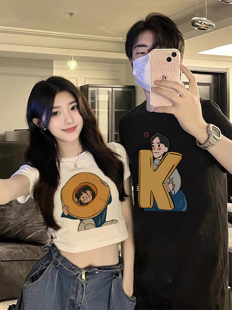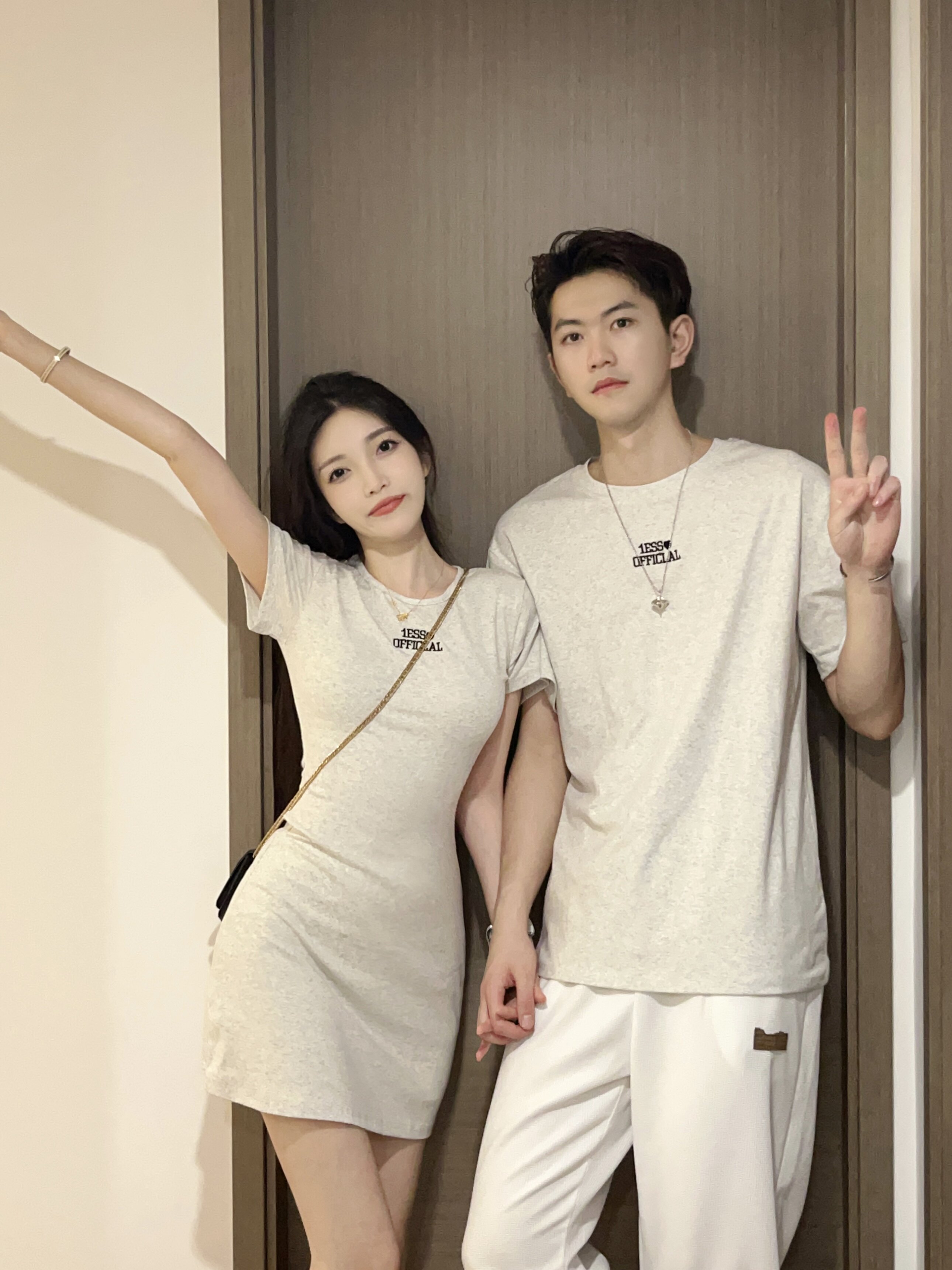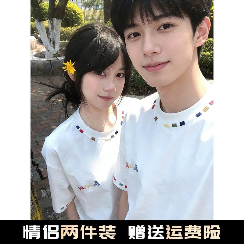 異なるカップル衣装Tシャツ 2026年夏の証明書登録 半袖 インターネットセレブニッチ 高級スーツ 女性向け