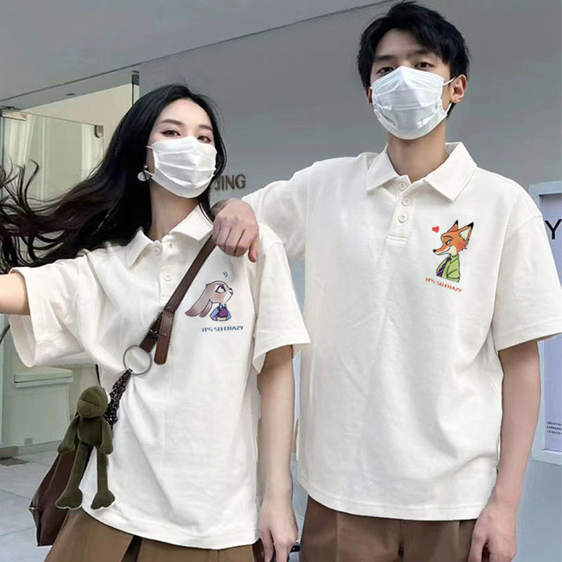 アンセリエンスなカップル衣装 サマードレス 2026 新しいフォックスラビットポロシャツ 半袖 デイリー通勤用女性用Tシャツセット