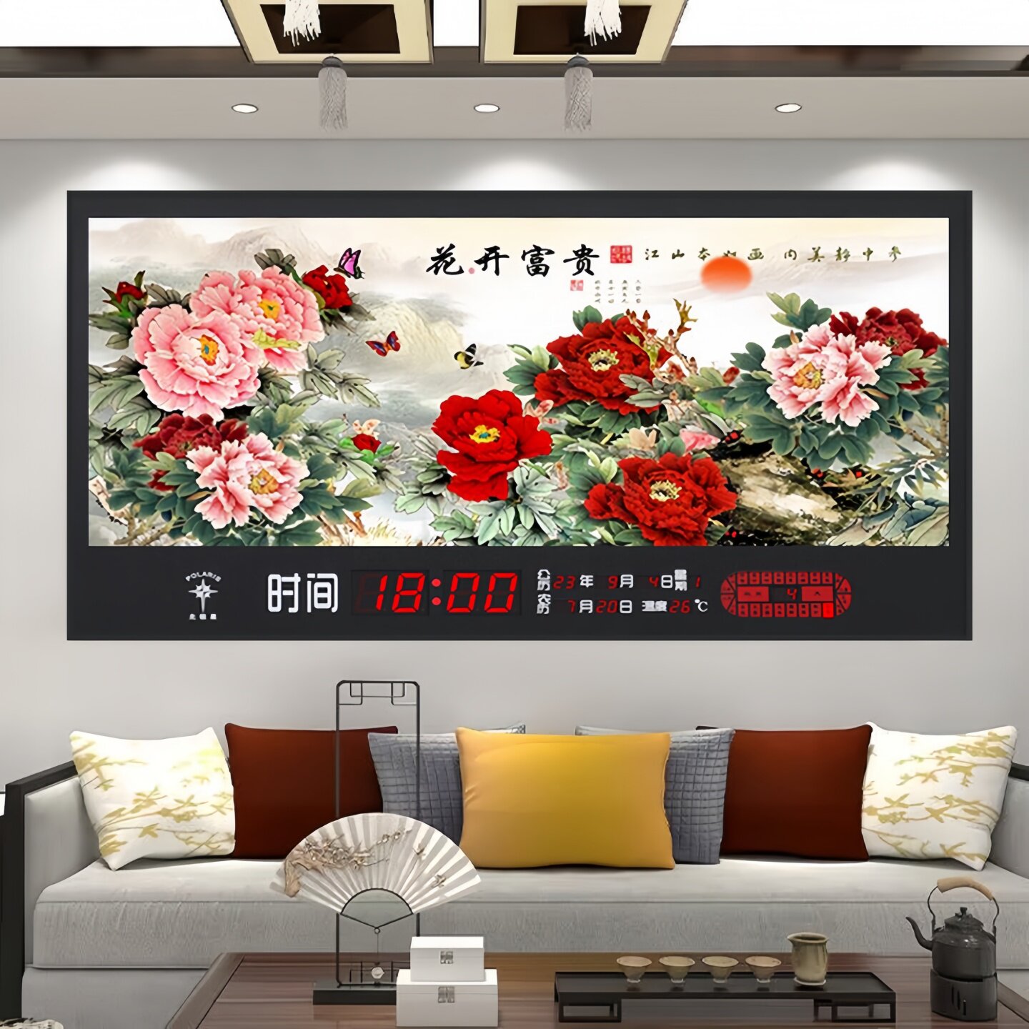 日照金山デジタル永久カレンダー電子時計吊り下げ時計装飾画家レストラン時計掛け壁掛け無料パンチ穴