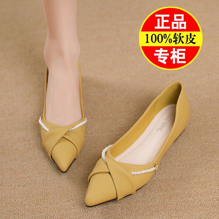 2026年春秋の女性用ソフトレザーフラットシューズ 妊婦用新しい多用途女性用ソフトソールの尖ったビーニーシューズ