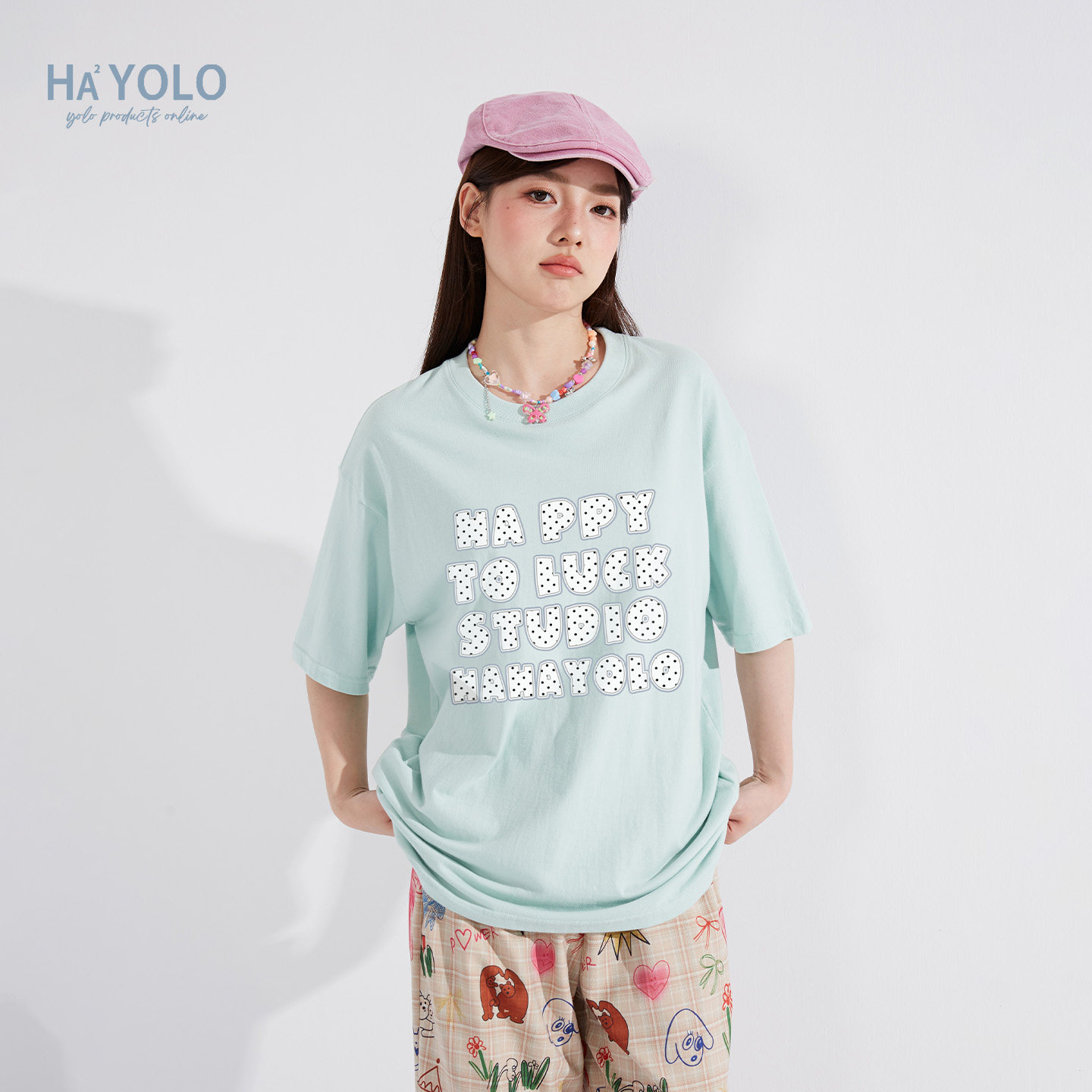 HAHAYOLO アメリカン水玉モノグラムアップリケプリント 半袖Tシャツ 女性用夏 新しい多用途ニッチ ゆったりした半袖
