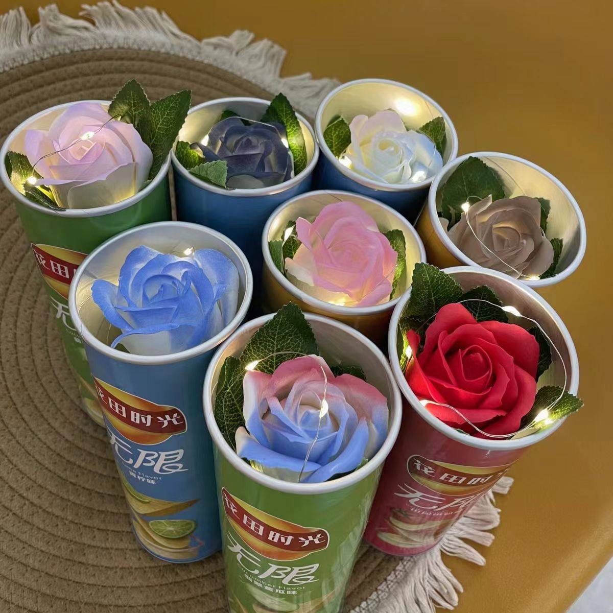 ポテトチップス、バケツ、隠された石鹸、花が先生やホリデー愛好家、親の誕生日、DIy、サプライズの儀式ギフトに運ばれます