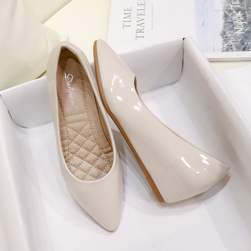 インワードハイテンドビーンシューズ、レディースサマーパテントレザー、ポインテッドトゥ、スモールサイズウェッジヒールシューズ、ウィメンズフォーシーズンズフラットテンパラメント、ソフトソールワークシューズ