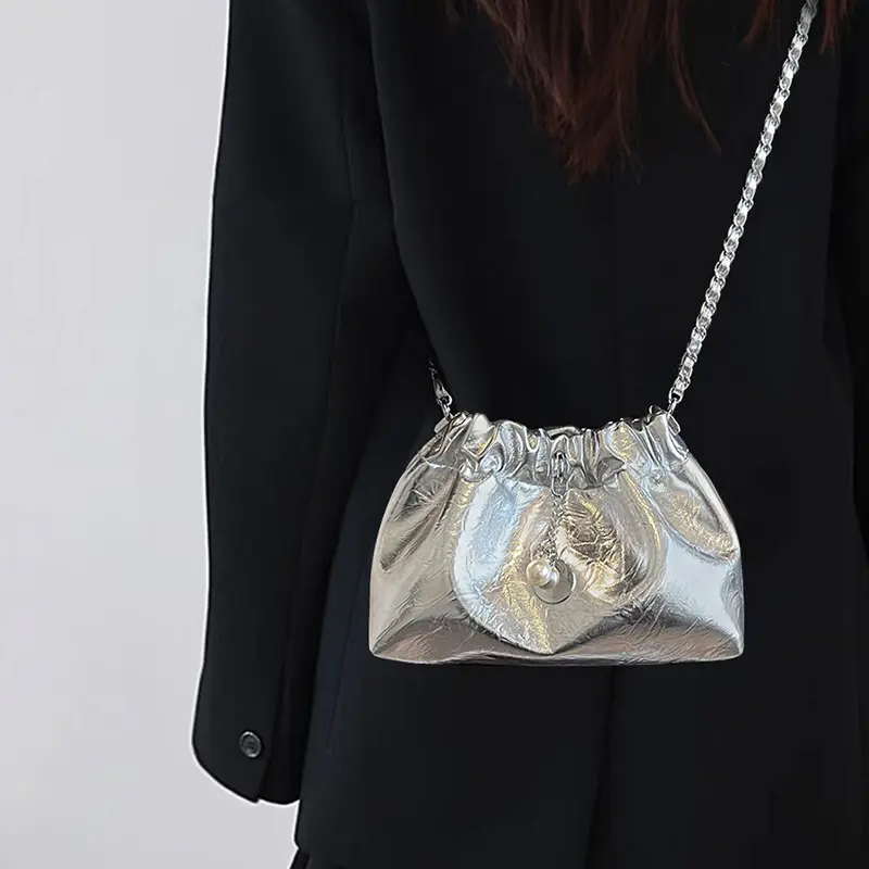 ニッチデザインバッグ 女性用2025年新ファッション ハイエンドチェーン ワンショルダークロスボディバッグ プリーツバケットクラウドバッグ