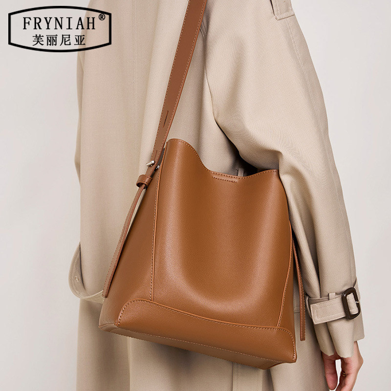 ライトラグジュアリー高級バッグ 女性用バッグ ファッショナブルレザーバケットバッグ 2026年新型大容量シングルショルダークロスボディ通勤バッグ