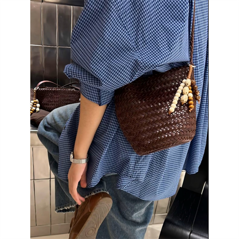 ニッチデザイン 高級手織りクロスボディバッグ 女性用2025年トレンドの大容量レトロショルダーバケットバッグ