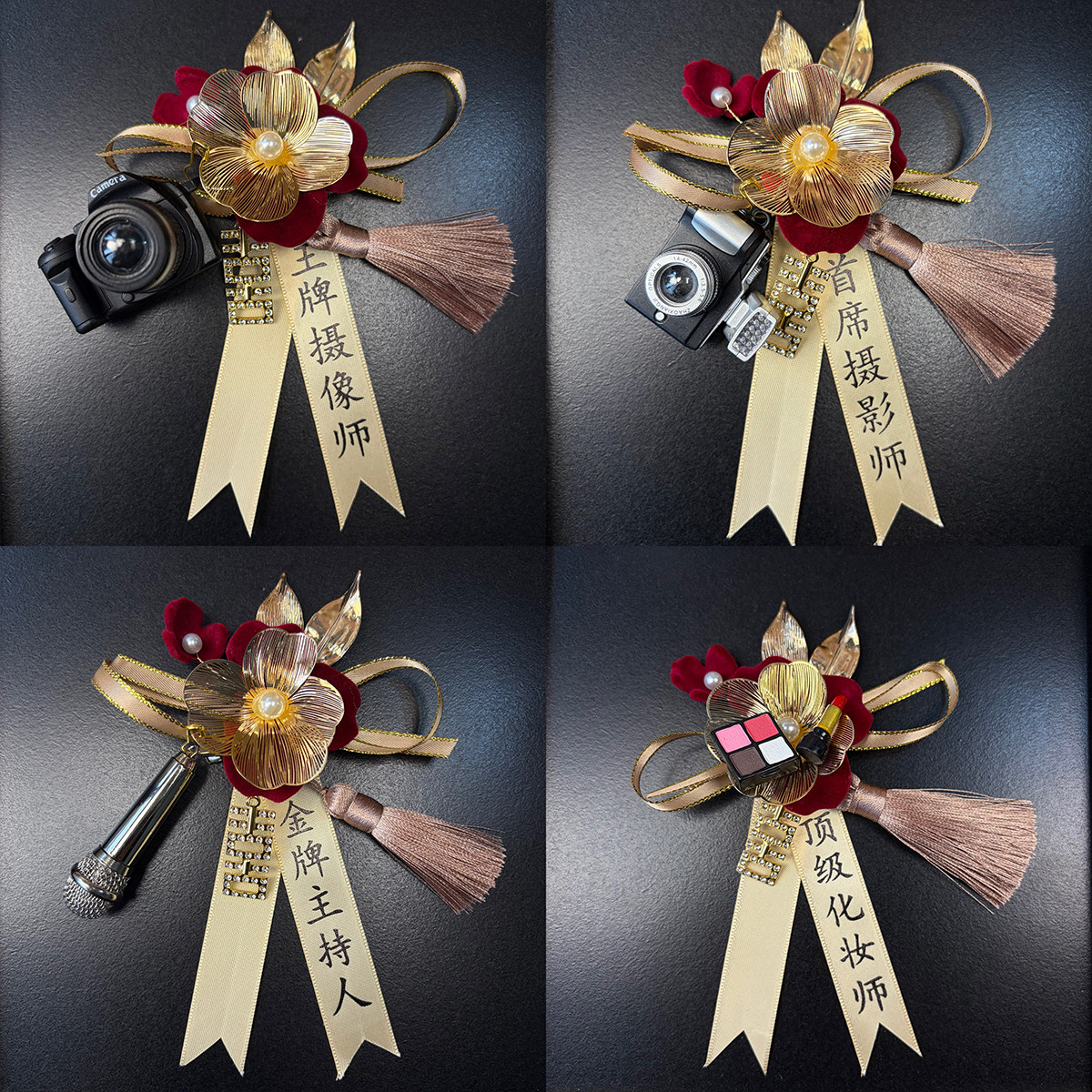 キングコングのコサージュ4点、メイクアップアーティスト、写真家、結婚式スタッフ、ブローチ、結婚式のコロゲート、小さなサプライズギフト