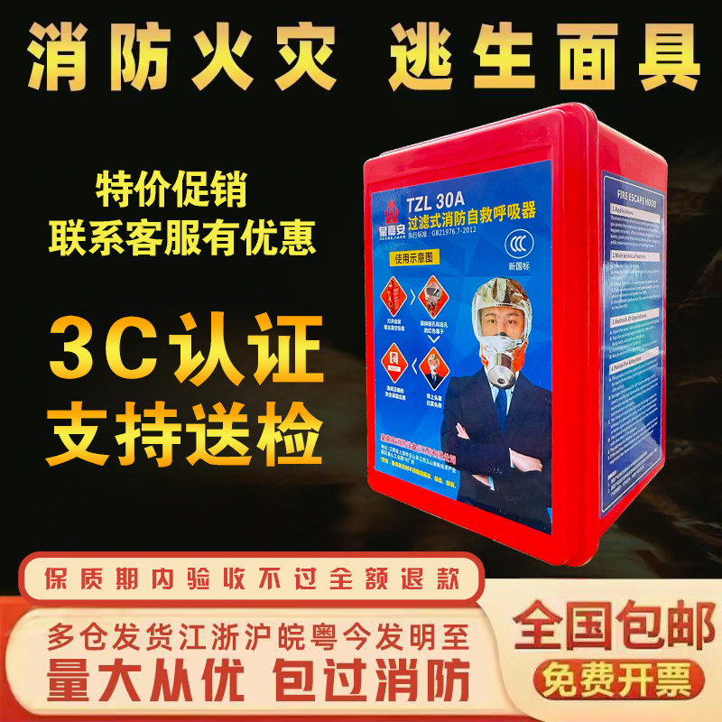 防火マスク、防火マスク、煙マスク、防煙マスク、ホテル3C認証、家庭用非常階段、セルフレスキュー呼吸器