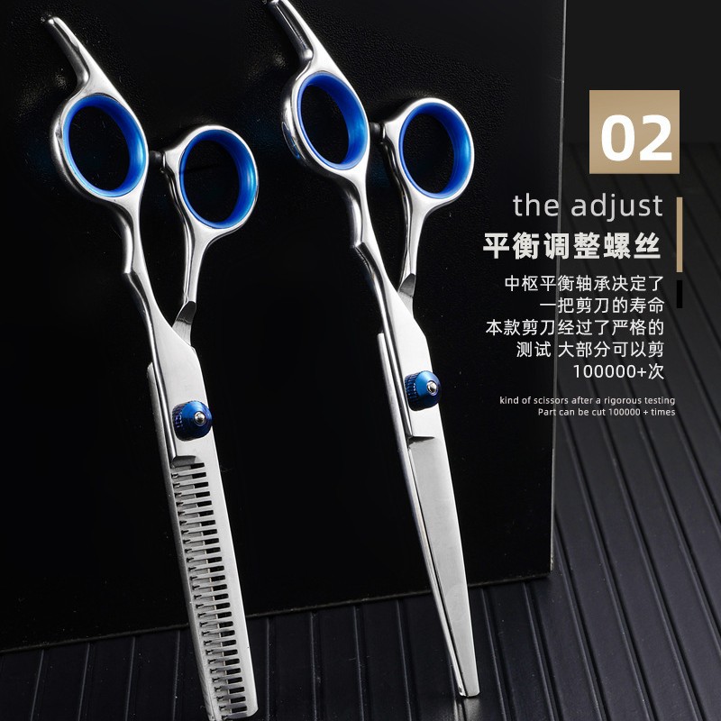 ブルージュエルヘアハサミセット 平らなカッティング歯 薄いカッティングヘアスタイリスト ヘアハサミ