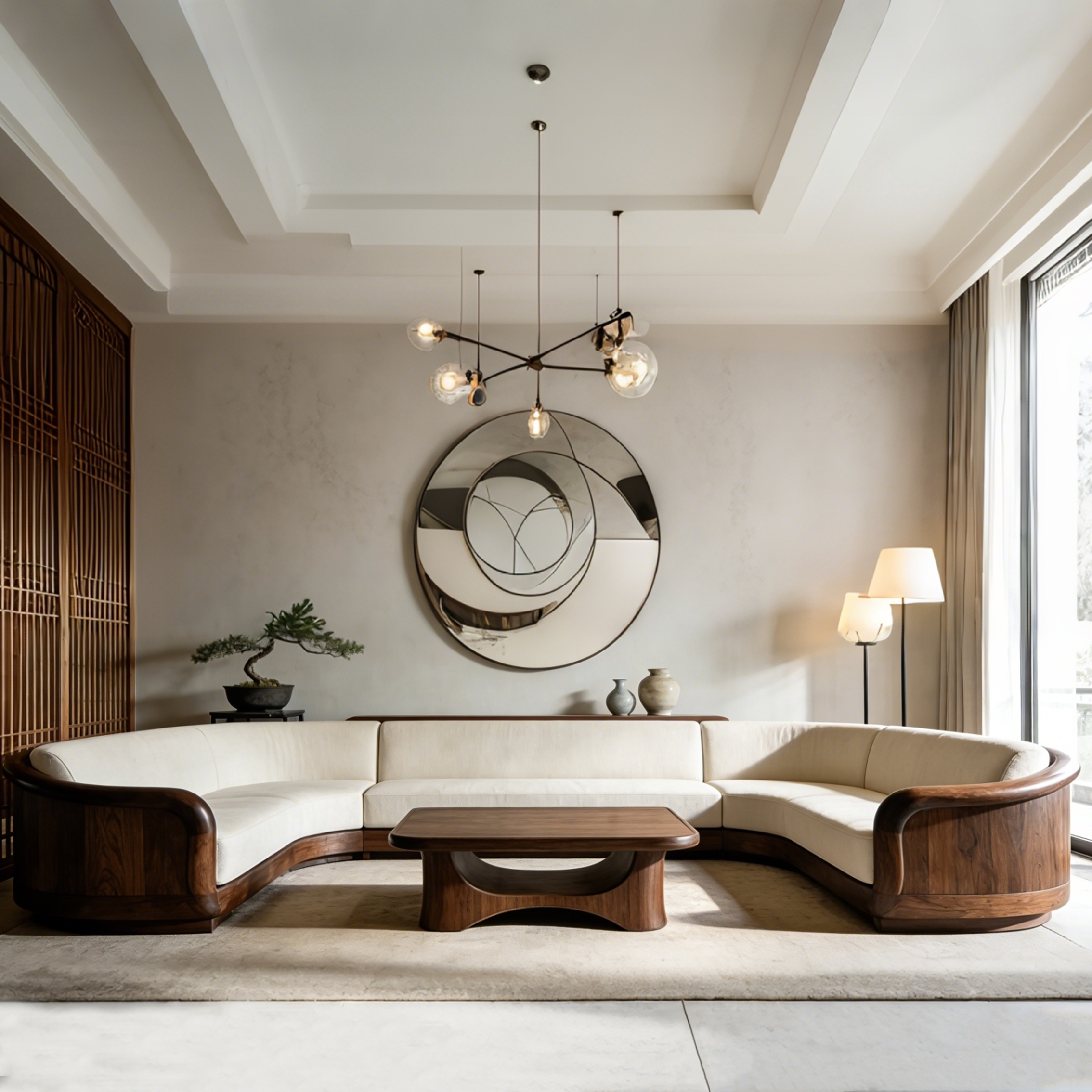 新しい中国のモダン、シンプルに曲がった無垢ソファ、アッシュ、デザイナー、リビングルーム家具、軽い高級住宅ソファ