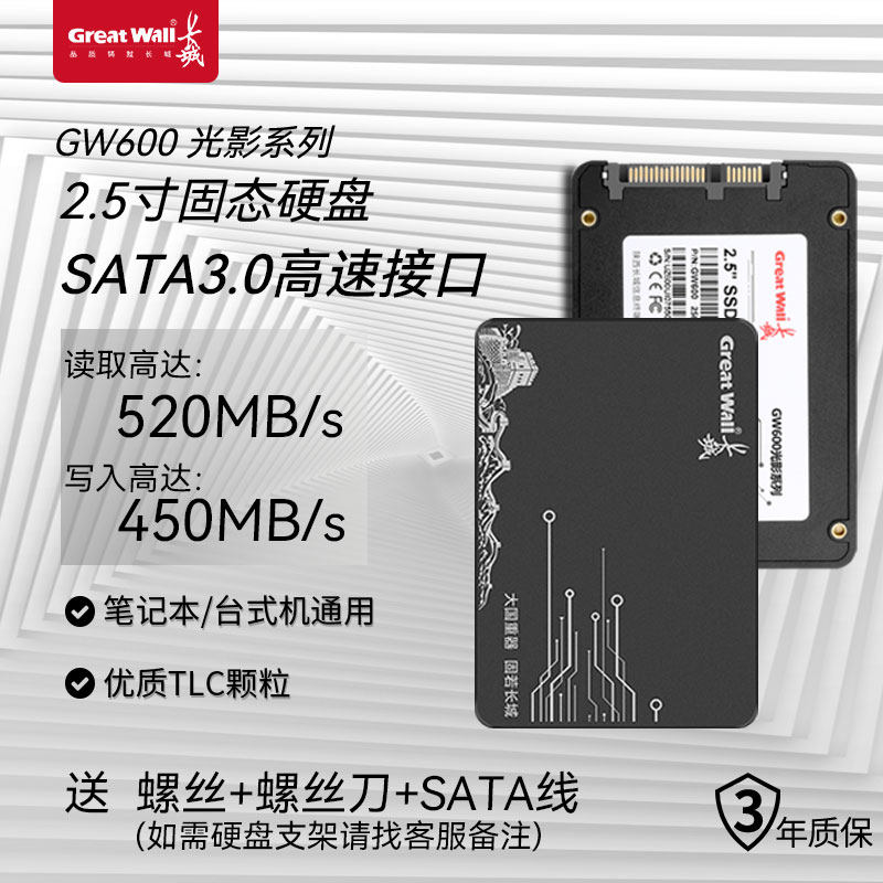グレートウォール 512G/1T SSD SATA3.0インターフェースデスクトップノートパソコンソリッドステート2.5インチSSD