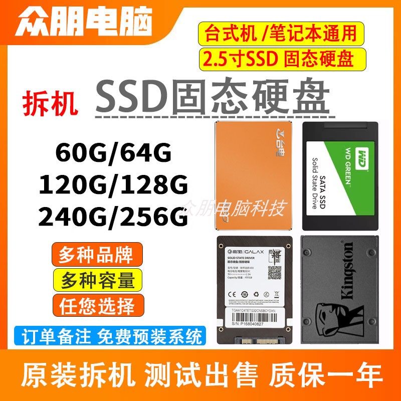 デスクトップノートブックの分解、2.5インチSSD、120g、128g、256g、512g、60g、SSD SATAを分解してください。