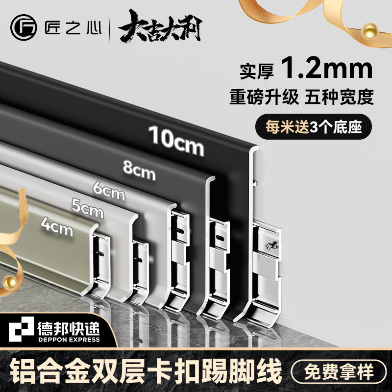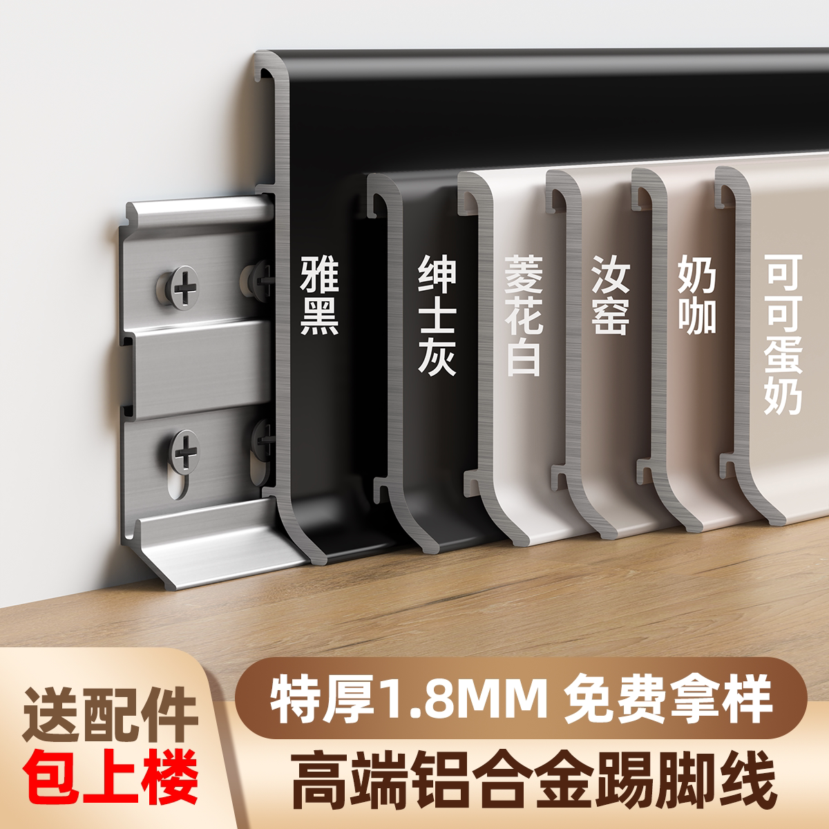 アルミ合金ベースボードスナップオンオールアルミフットライン 6cm8cmステンレス超薄型ミニマリストメタルフットライン