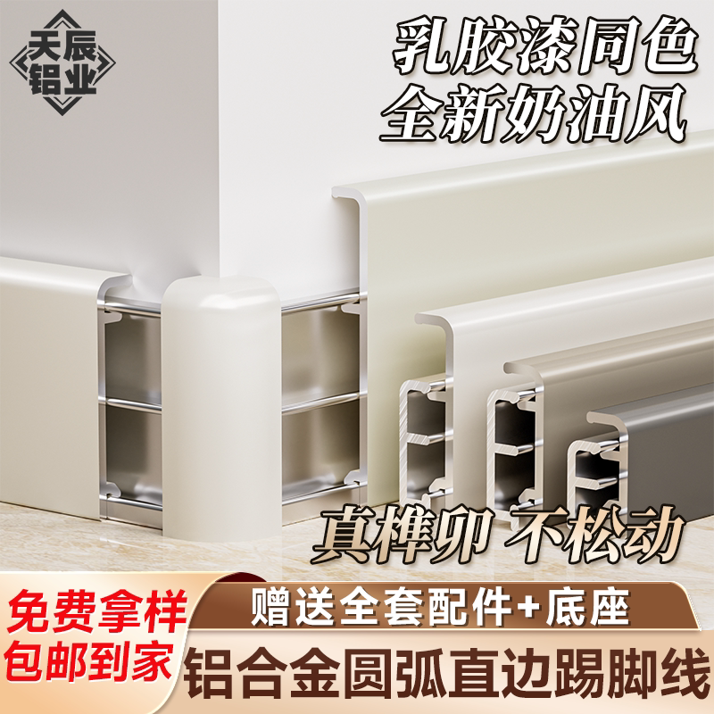 アルミ合金巾木、インターネットセレブリティクリーム風、非常に狭い床のコーナーフットライン、6cm8cmの金属ステンレス製フーティングライン