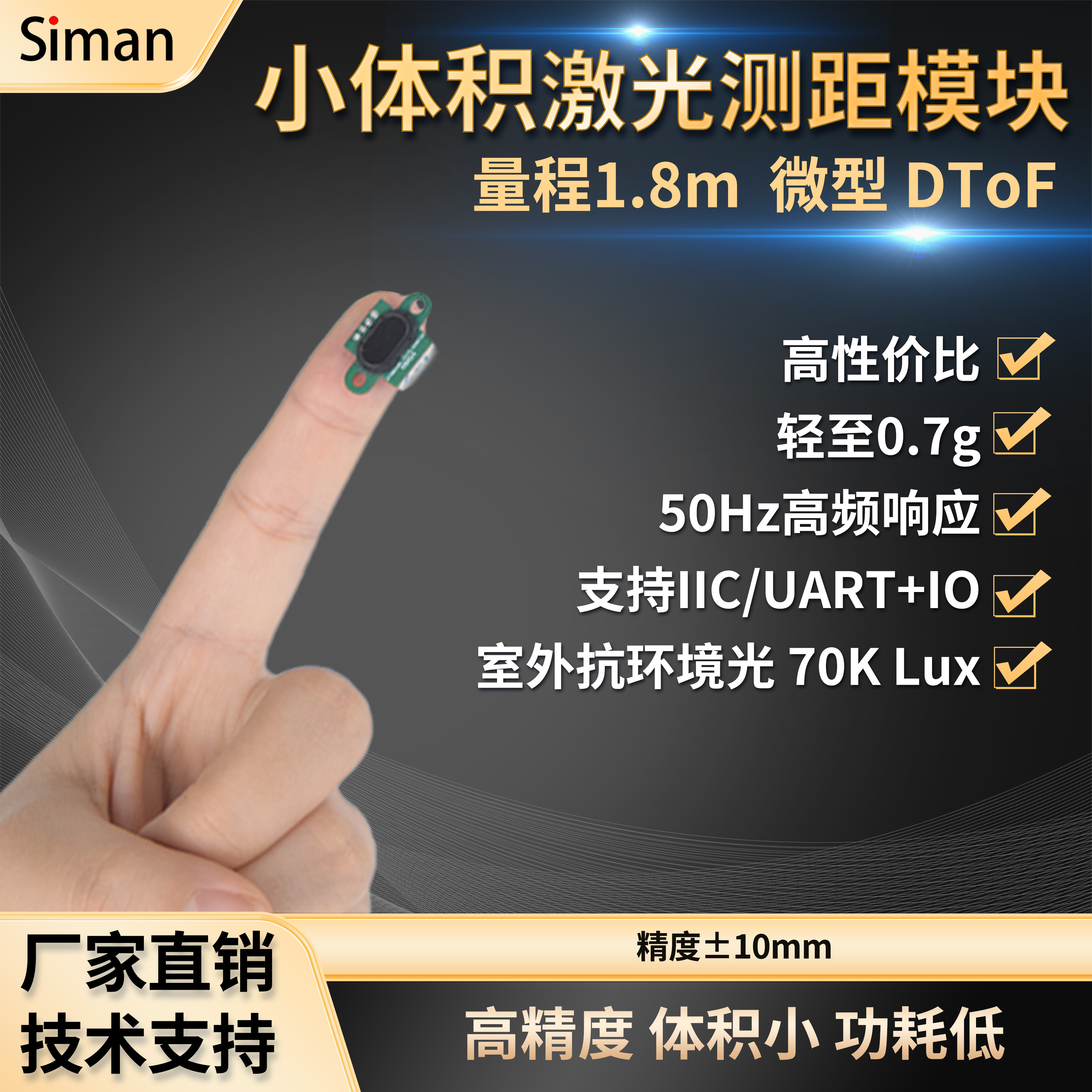 1.8mマイクロレーザー測距モジュール ミリ精度 DTOF測距センサー 障害物回避 UARTIIC出力