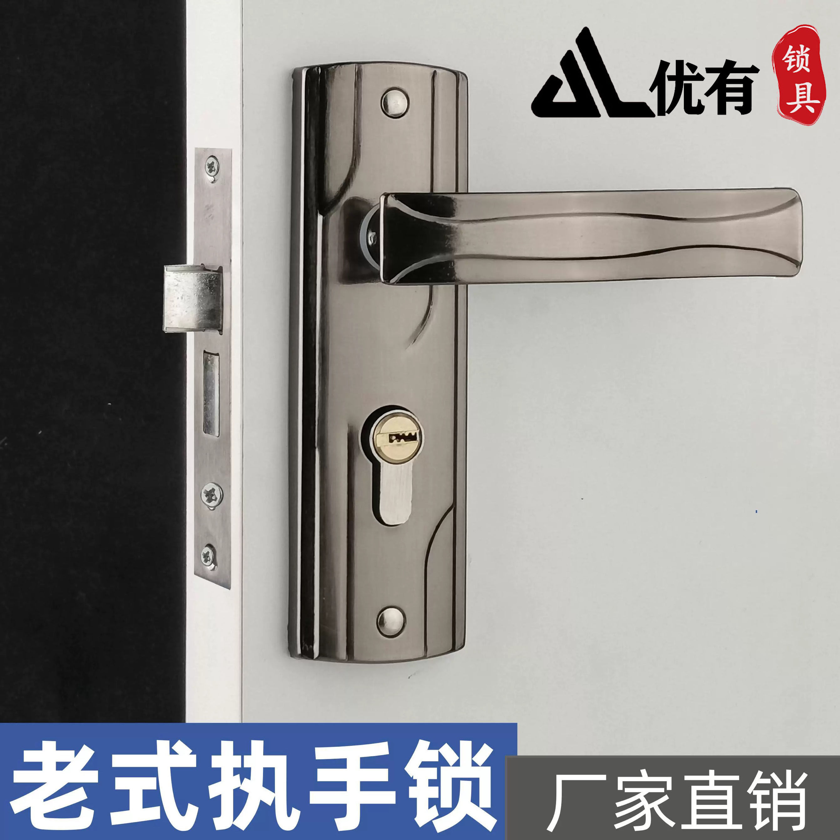 125穴の木製ドア、古い鉄製ハンドルパネル、寝室のドアハンドルロック、小さな50ドアハンドルドアロック、ロックチェンジロック寝室。