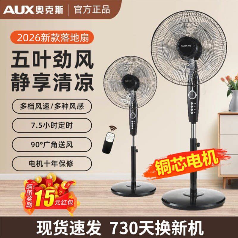 オークスの電動扇風機床扇風機家庭用省エネ縦型寮リモコン風音照明産業 2026年新設