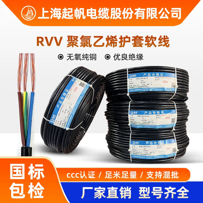 祁帆線とケーブル RVV2 コア/3/4/5/0.5/1.5/2.5/4 四角形国家標準銅芯軟被覆線