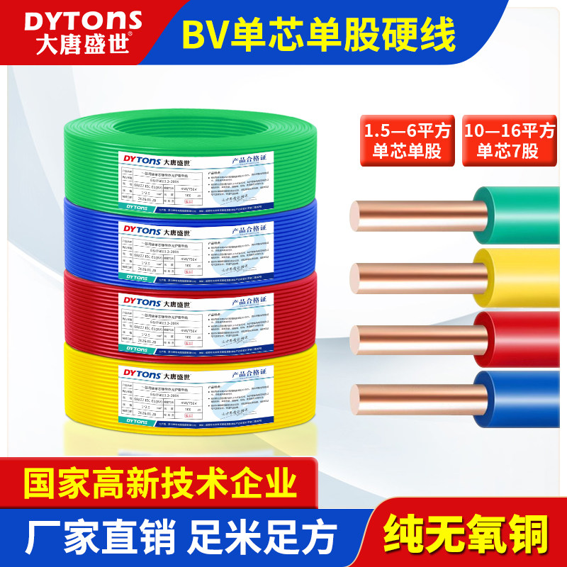 ワイヤー:ナショナルスタンダード銅芯BV 1.5/2.5/4/6スクエア難燃ハードワイヤー、家庭用デモ用シングルストランドケーブル