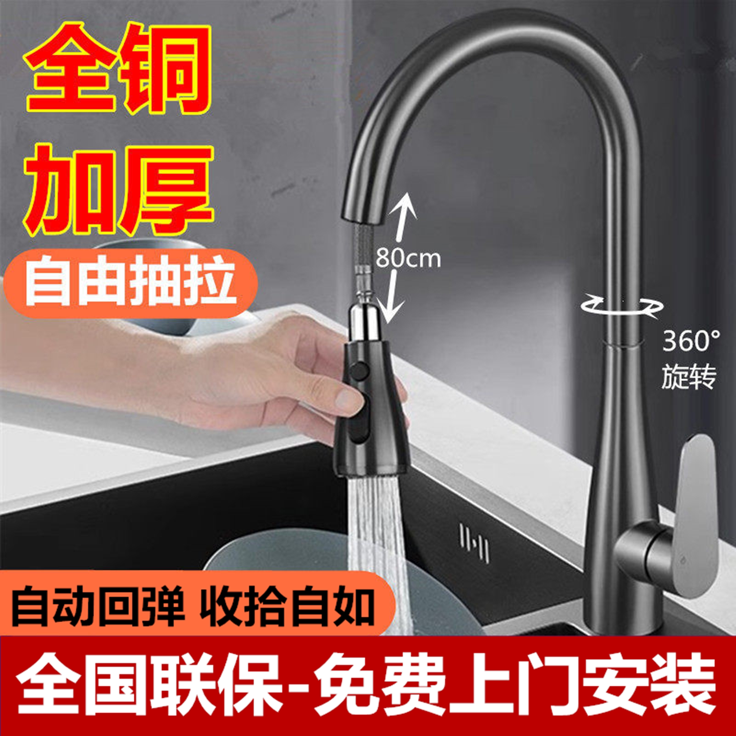 全銅製のキッチン温水・冷水蛇口、洗面器やプール専用の引き出し式回転式伸縮シンクのパッケージ設置