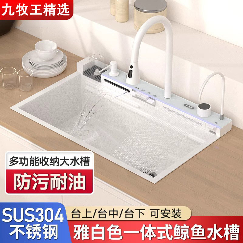 シンク 大型シングルシンク 食器洗い 洗面器 SUSUS304 ステンレス製キッチン 家庭用多機能デジタルディスプレイ ウォーターフォール クジラ 台中盆地