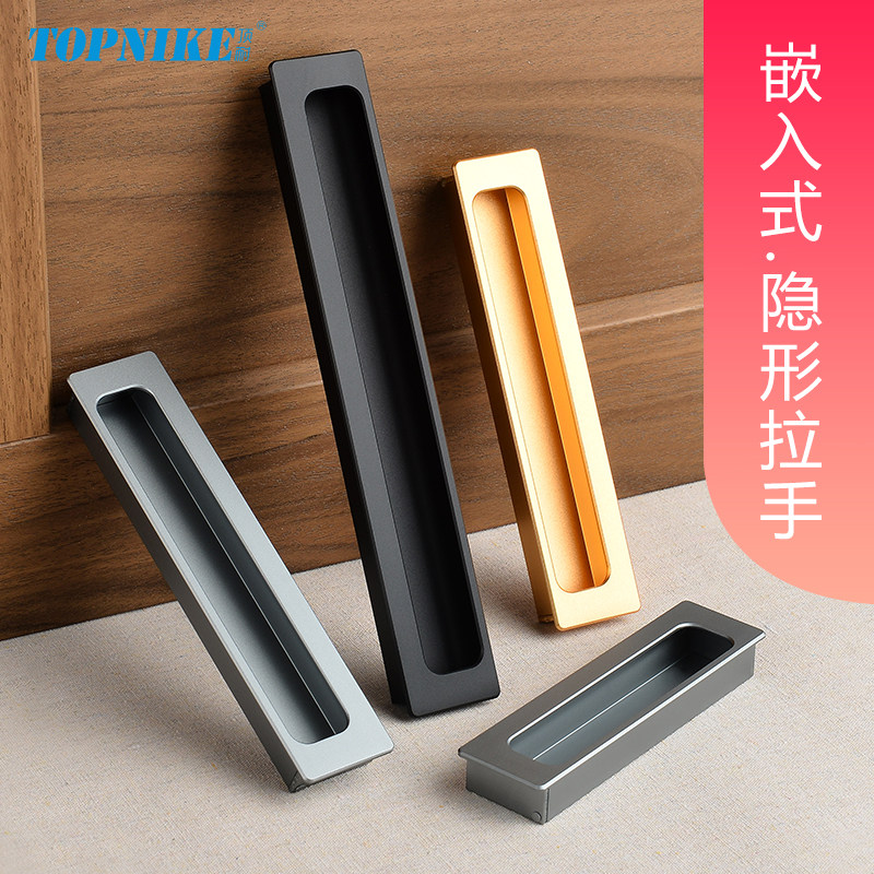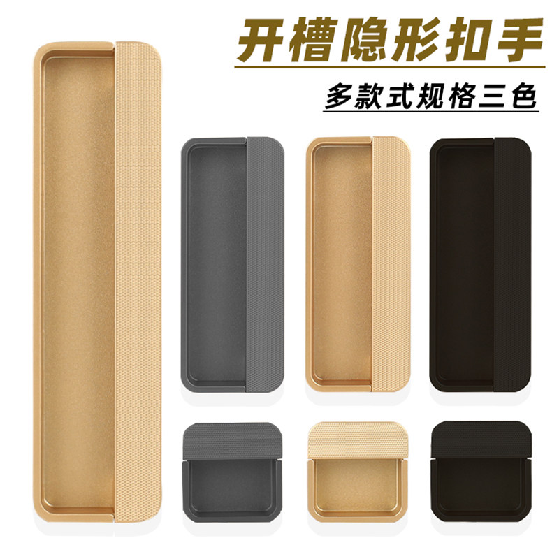 隠し込み黒の引き出しハンドル、モダンスペースアルミ埋め込みハンドル、スライドドア、スロット付きアルミ合金バックルハンドル