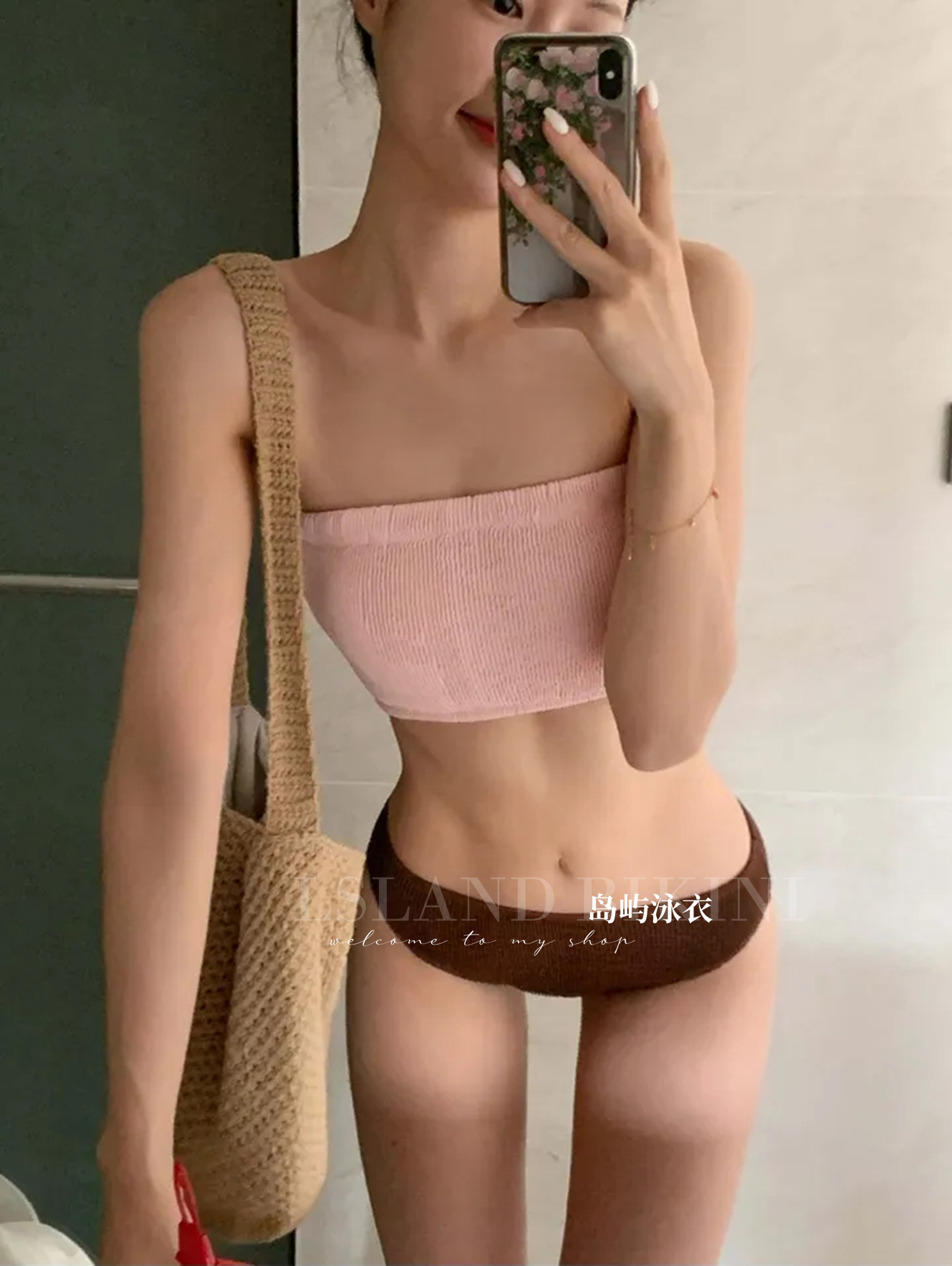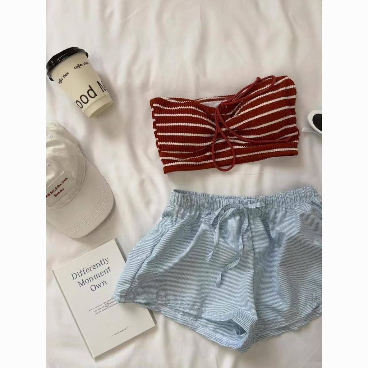 水着女性、韓国のスプリットバンドゥ、三角ビキニ、セクシーでスリム、小さな胸が集まる、休暇中の温泉水着