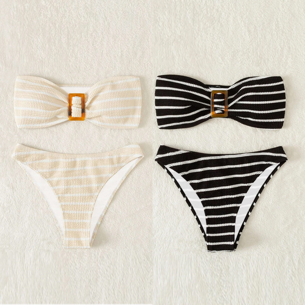 新しいヨーロッパとアメリカのバンドゥビキニ、女性用ストラップレススプリットトライアングルビキニ水着