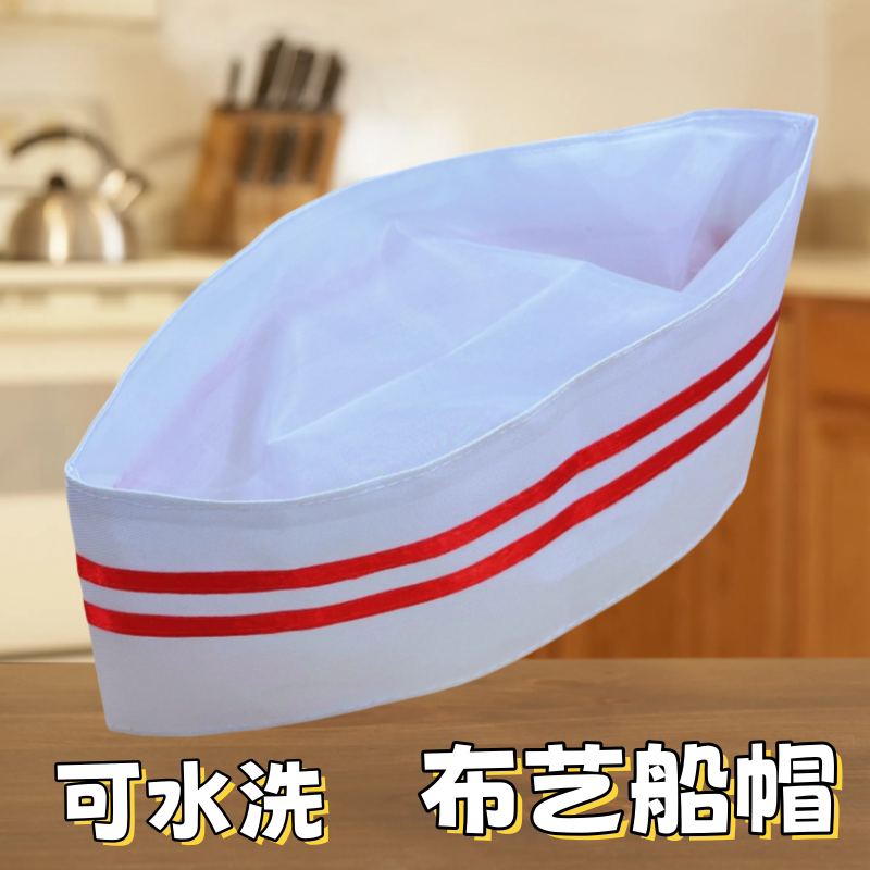 男女用シェフハット 作業帽 白い赤い縁取り キッチン 厚みのある生地ケータリング 防煙通気性ポリエステルボートハット
