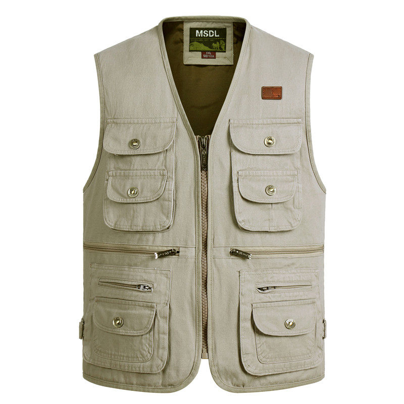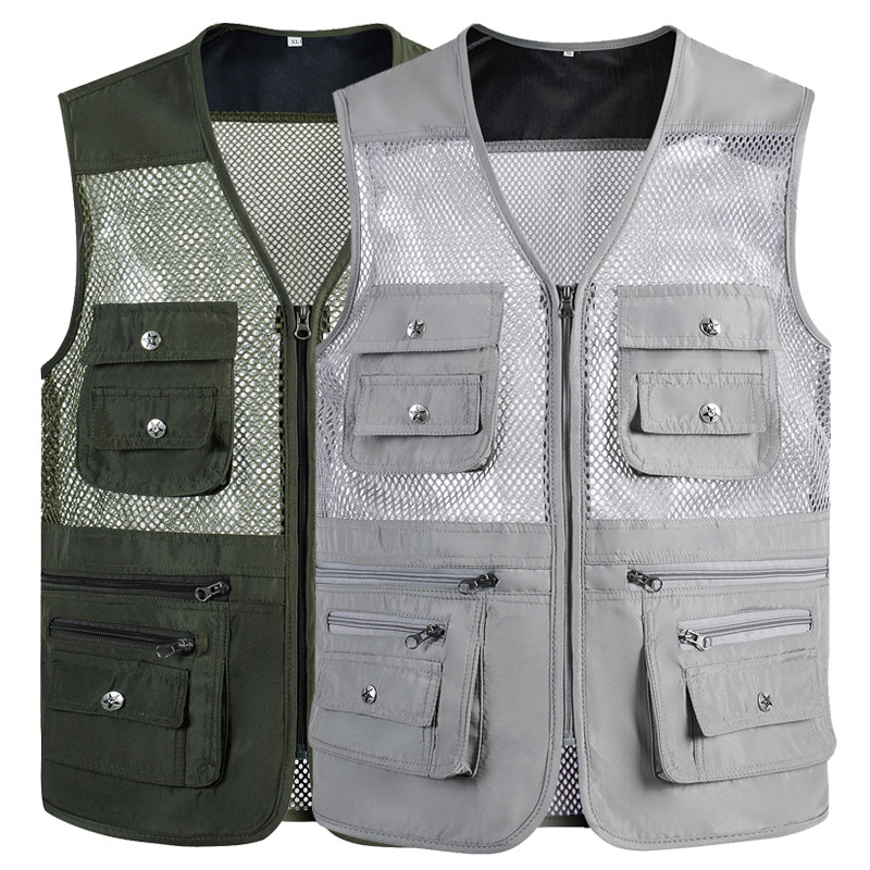 夏用薄手メッシュベスト登山、速乾性カジュアル、多ポケット中年男性写真、釣り、Vネックプラスサイズショルダー