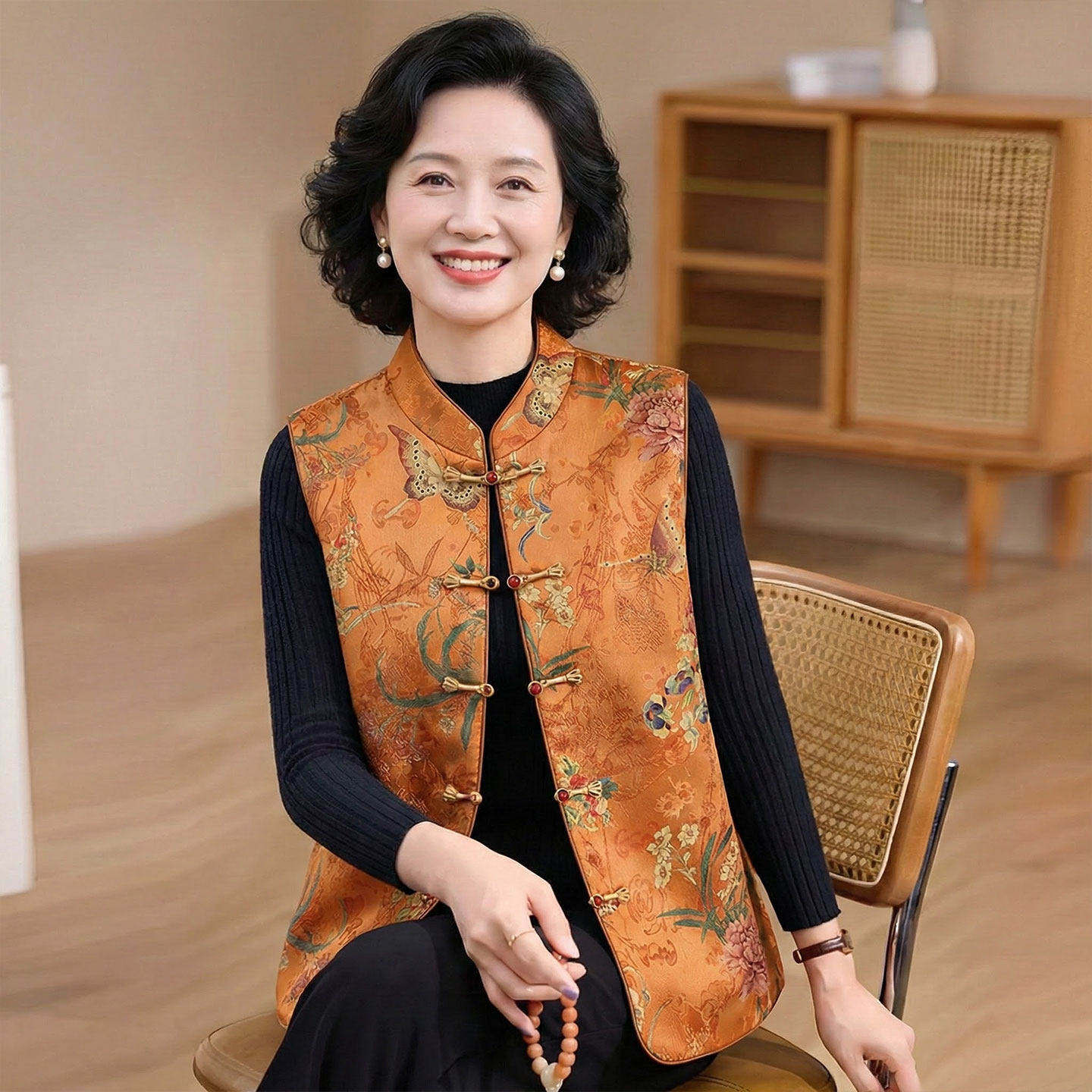 ママの春のドレスは、中年と高齢の祖母の春秋唐式衣装の上にベストを羽織る。新しい中国レトロショルダーベストのホースクリップ