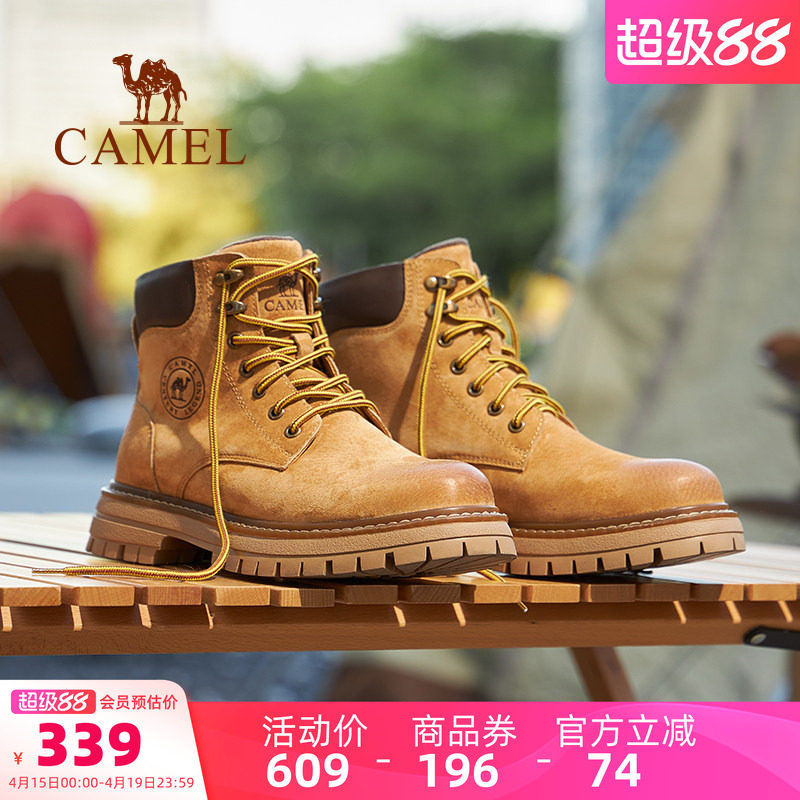 ワン・ジュンカイ、同じキャメル、マーティンブーツ、メンズスプリングハイトップ、ルバーブブーツ、カップル、レザー、アウトドア、登山オーバーオール、女性用