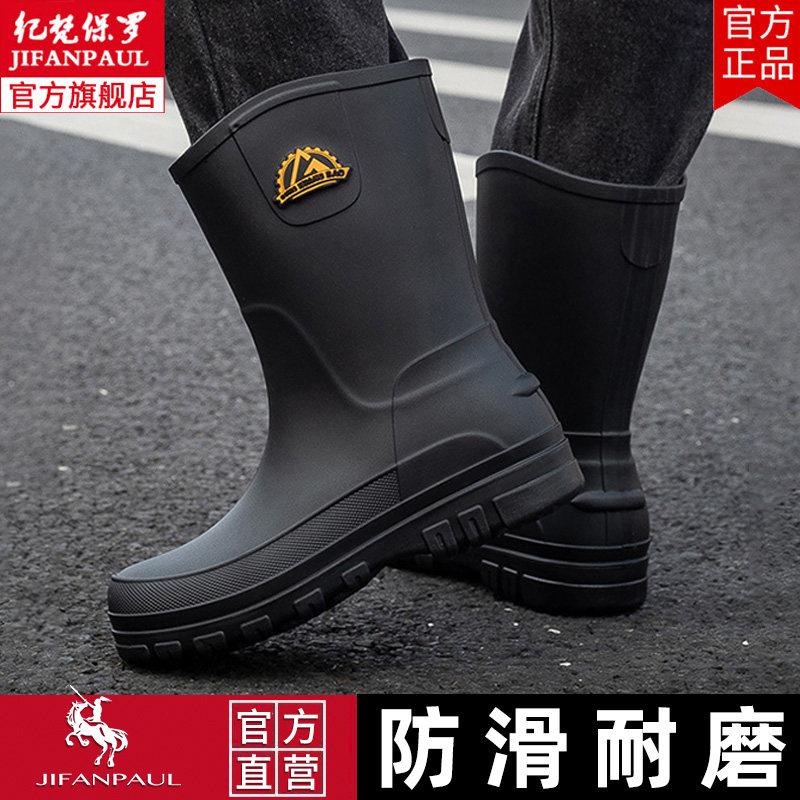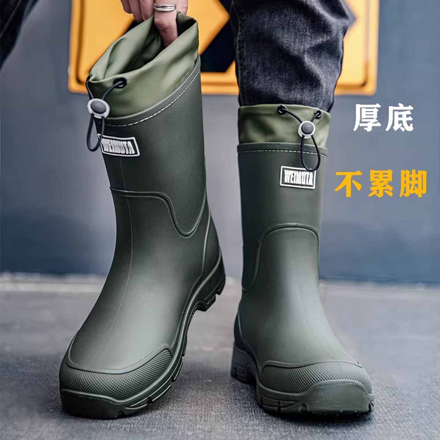 耐摩耗ファッションレインブーツ、メンズミディアムレッグ、滑り止め防水シューズ、レインブーツ、洗車、釣り、テイクアウト用ラバーシューズ、オールシーズンウォーターブーツ