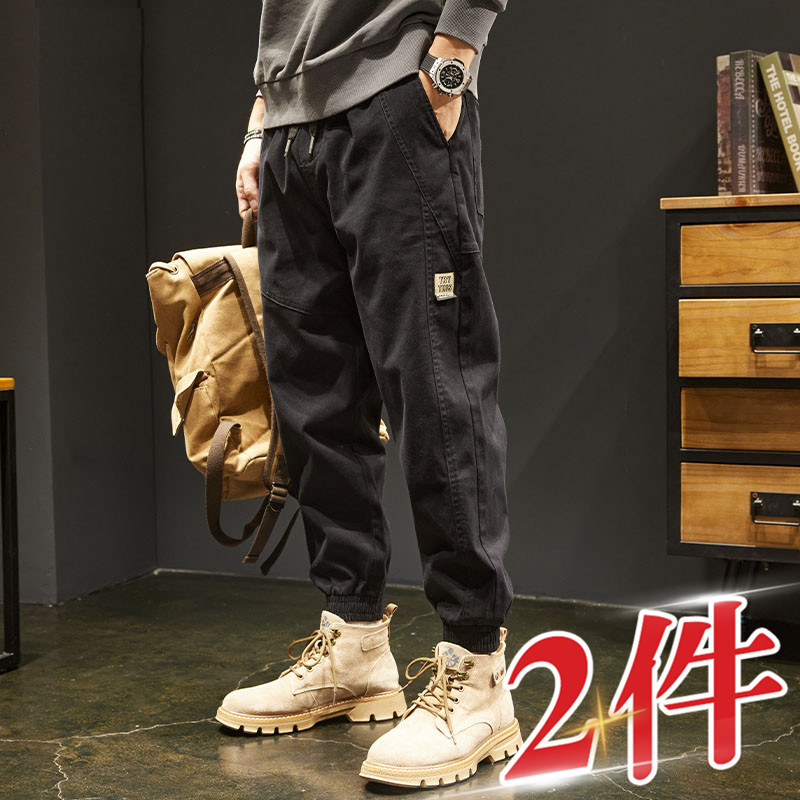 パンツ:メンズの春秋、香港スタイル、メンズのゆったりしたレギンス、スポーツパンツ、夏のレトロプラスサイズワークウェアカジュアルパンツ