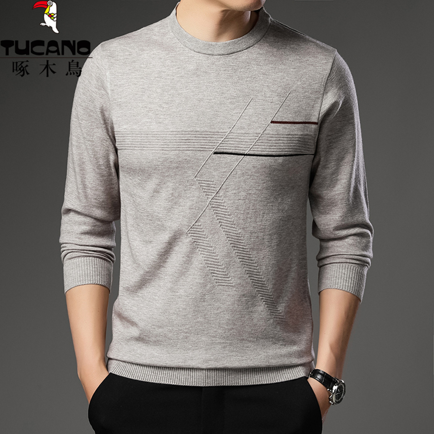 ウッドペッカー 2026 春/秋冬 長袖に薄手のウールセーター、メンズクルーネックベースシャツ、ニットセーター、メンズ