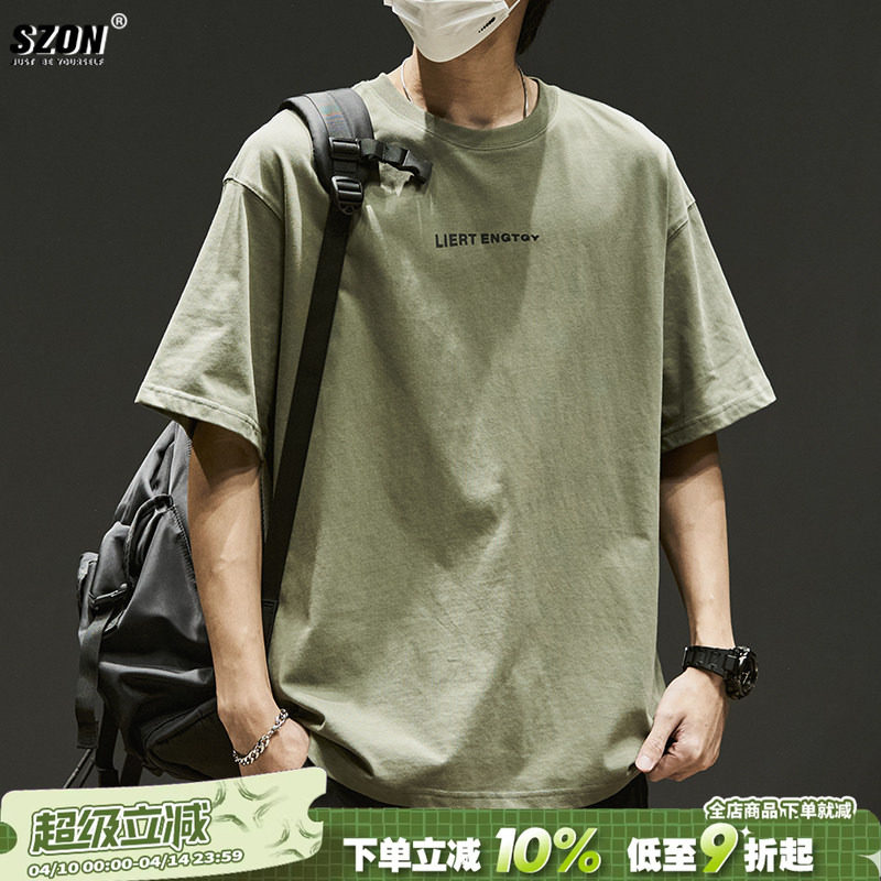 Zhenweisi 半袖Tシャツ メンズ 純綿 2026年夏 新作ユース アメリカン・ハイストリート・ブロックバスターブランドベースシャツ