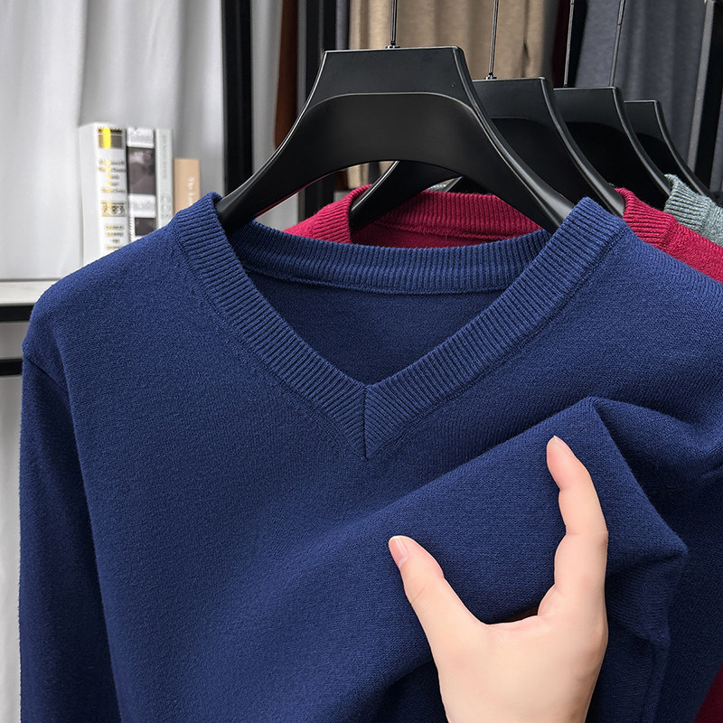 2025年春秋 新作メンズ Vネック薄手ベースジャケット 秋冬 中年セーター チキンハートネック ニットセーター