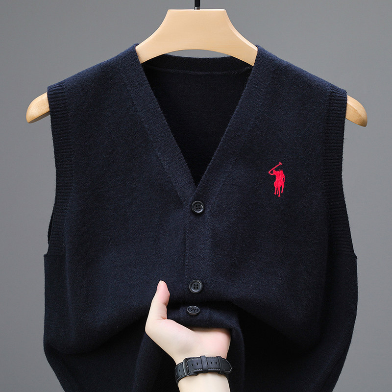 純綿ベストベストメンズカーディガンVネックプルオーバーノースリーブセーター 中年トレンド 無地色ニットショルダー