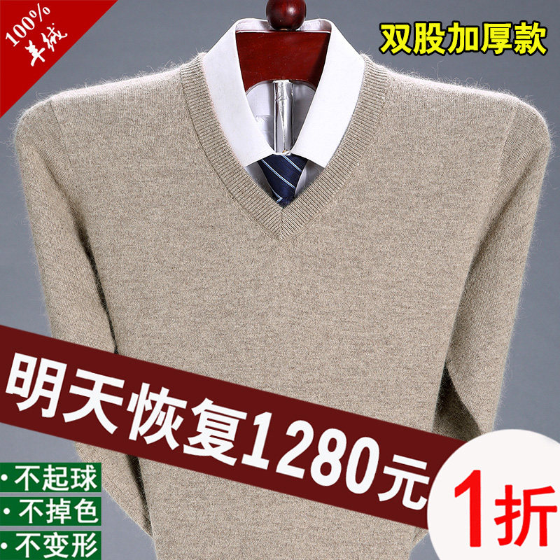 恒遠香ウールセーター メンズ冬用厚み 100枚の純羊毛Vネックセーター 中年のボトム パパ プラスサイズセーター