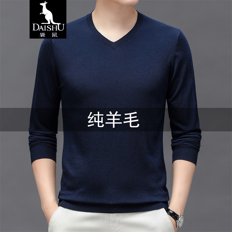 春と秋の薄手ウールセーター、メンズVネック薄手ベースシャツ、秋冬の中年セーター、鶏の心臓のネックウールセーター