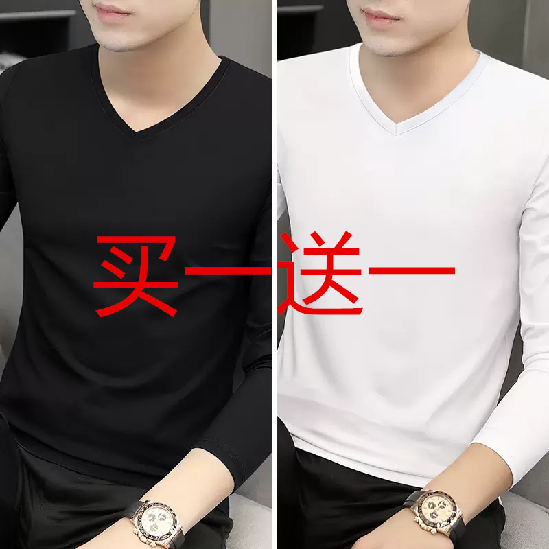 春の新モダル長袖Tシャツ、メンズVネック無地シャツ、薄手ベースシャツ、韓国版のトレンディな服